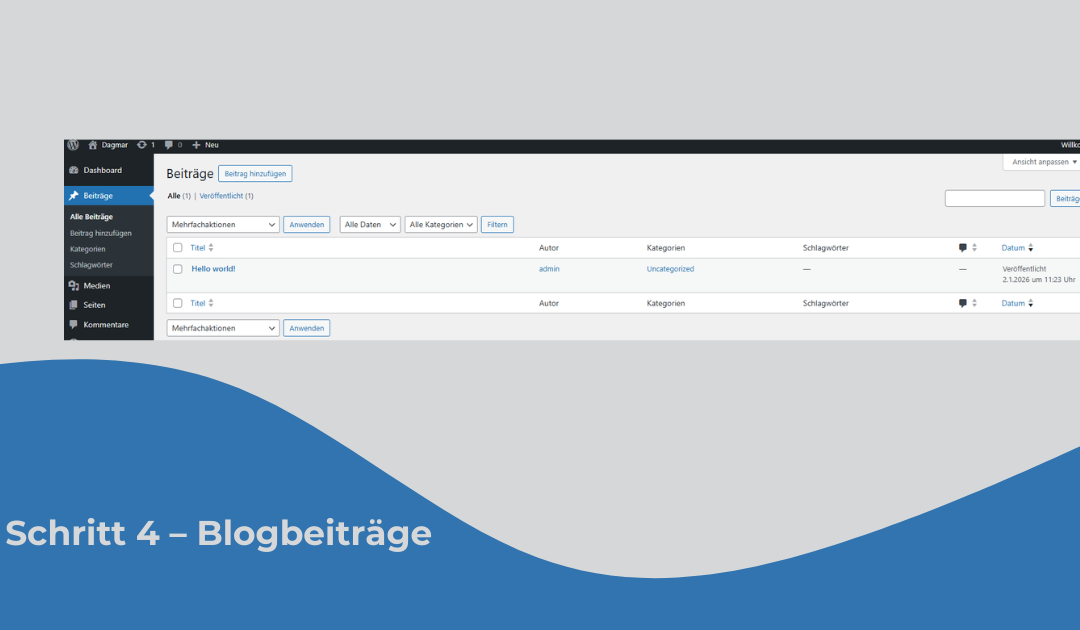 Unter „Beiträge“ erstellst du alles, was später in deinem Blog erscheint –